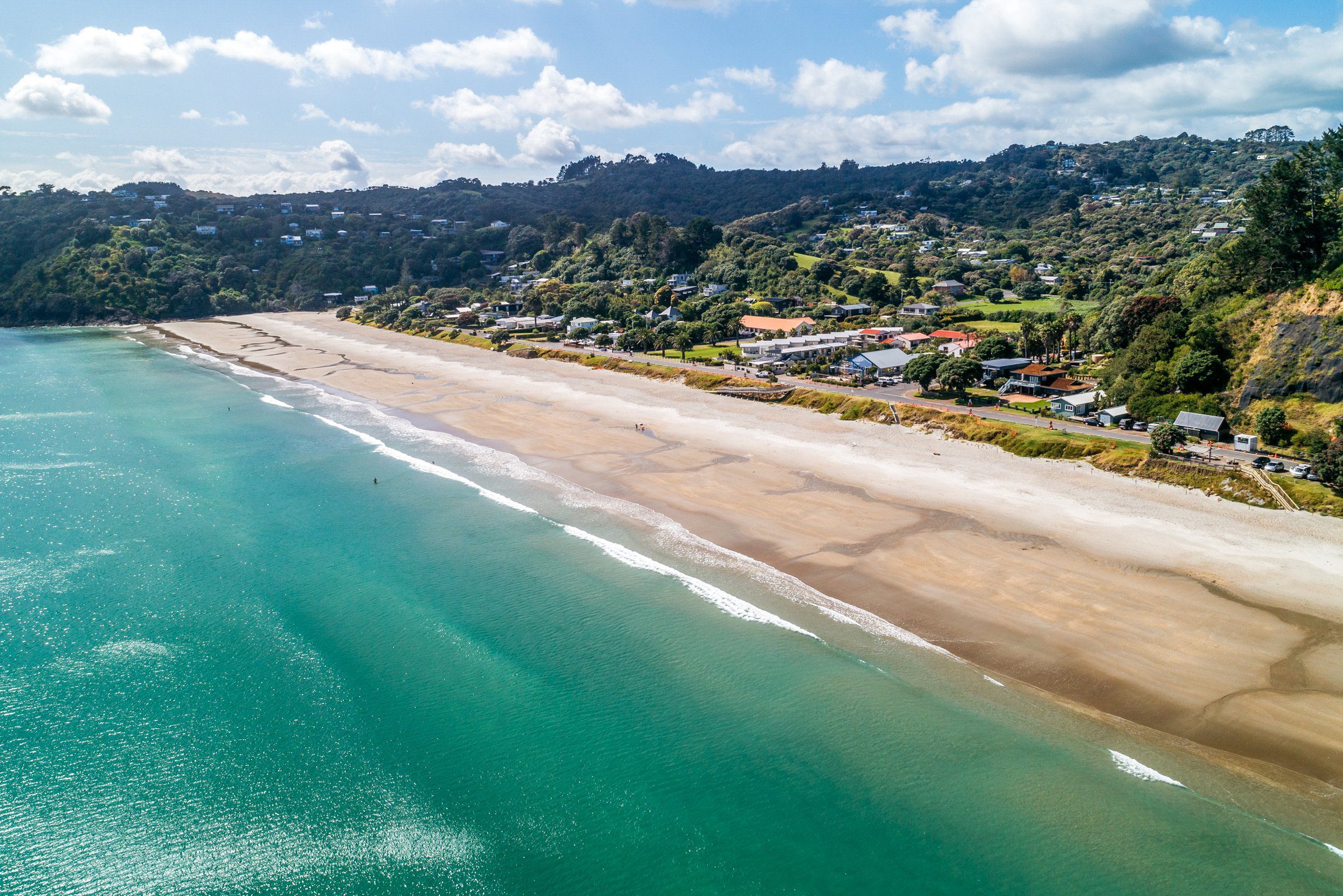 As Waiheke Island’s largest beach, Onetangi offers stunning views over Great Barrier and Little Barrier Islands in the distance. The pristine golden sands and some of the clearest waters in the Auckland region make it an idyllic spot.